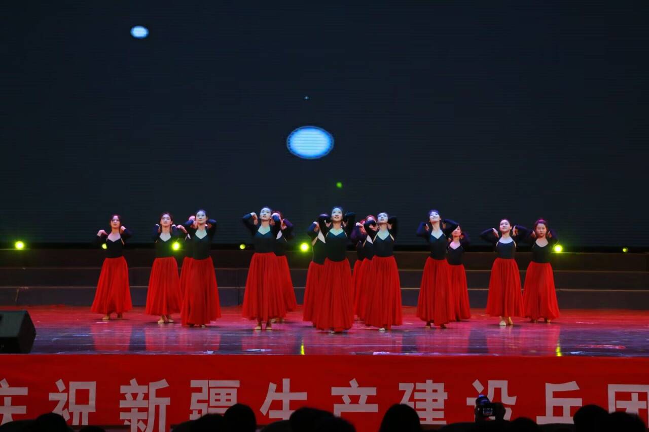 随着乐队倾情演绎的《西湖》、《霓虹甜心》,现场气氛瞬间被点燃,迎新晚会在师生的欢呼声中热烈开场。第一篇章“奋楫笃行共谱华章”舞蹈《娜孜碧柯》以优美的舞姿,灵动的步伐,展现着独特的异域风情与文化;民乐合奏《锦绣韶华》,让人仿佛置身于江南水乡的亭台楼阁之间,品味着琵琶与三弦合奏的无穷魅力。歌曲《我是一条小河》在歌者的深情演绎下,每一句歌词都化作一束光芒,照亮我们前行的道路;朗诵者以激昂的语调朗诵的《永远的兵团》,诉说了兵团的故事,让在场观众深刻感受到那份坚韧不拔、勇往直前的精神力量。